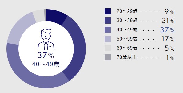 - 40歳~49歳が全体の約37%
