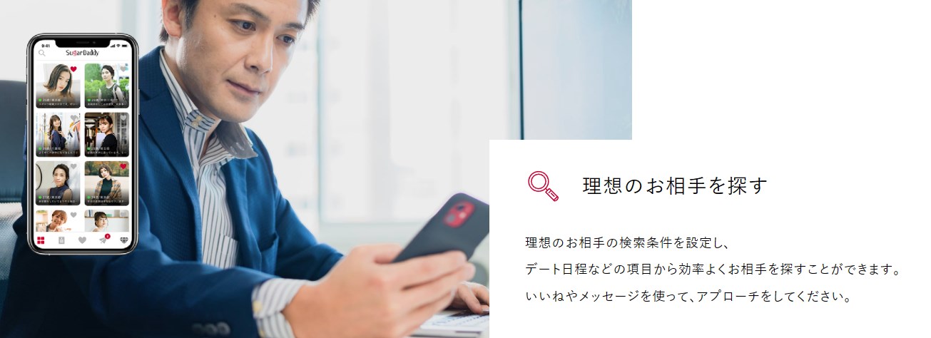 シュガーダディは年収証明機能があるため、「医者や経営者などハイスペックな男性が多い」との声が多数。太パパと呼ばれるお手当を惜しまない男性に出会えたという女性からの評判が目立ちます。 - 「使いやすさが抜群」